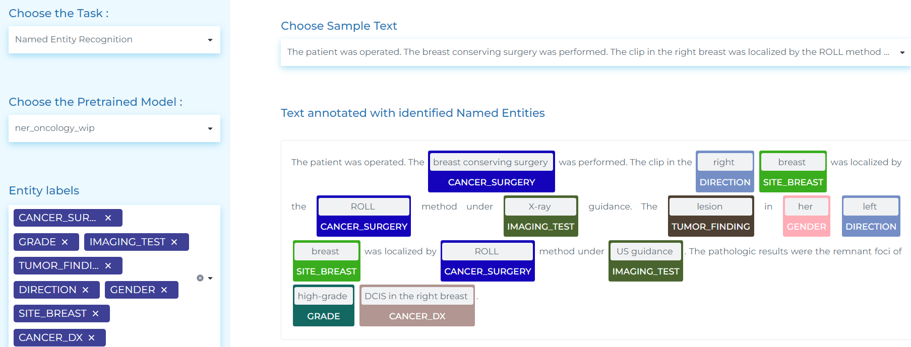 Healthcare NLP NER models detect clinical entities in text, extract names of chemicals and drugs, explore oncological terms, etc.