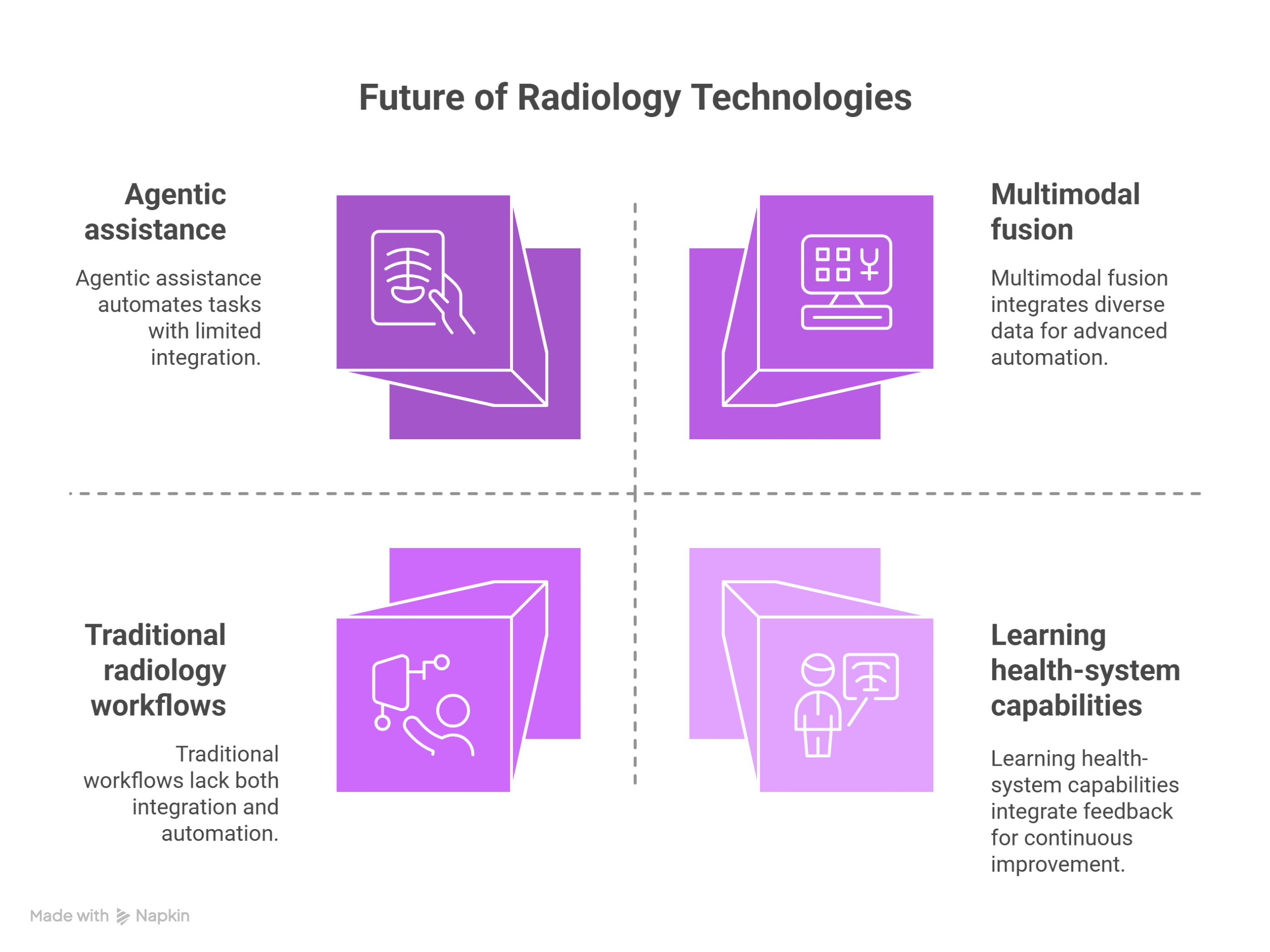 - Multimodal fusion across disciplines: Imaging + pathology + genomics + clinical notes will drive next‑gen radiology pathways.