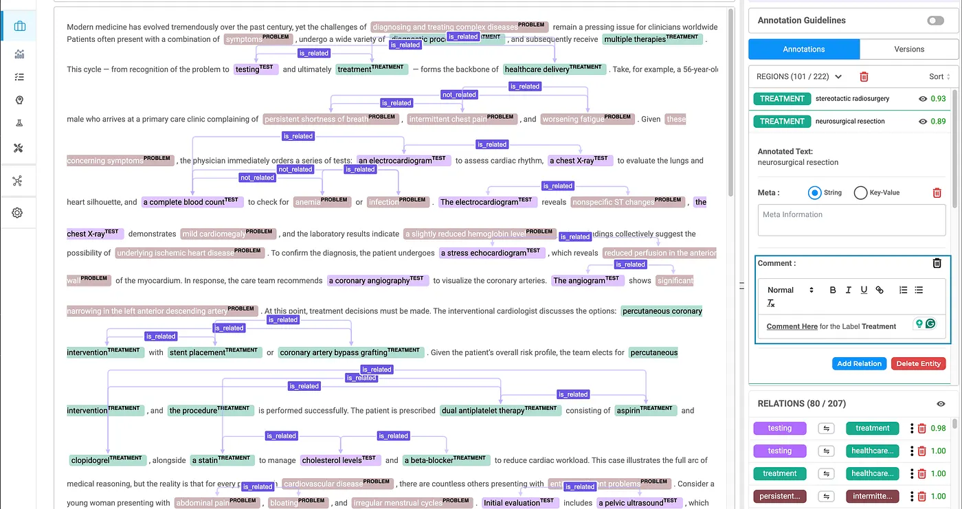 Consider this example: You review a model’s output on clinical trial data. You find a flagged entity, such as an incorrect dosage reference. Your annotation tool requires you to enter the reason in a short meta field. The full explanation, the check against PubChem data or the conflict with trial arm KLP-112 becomes hard to share. This information gets lost when you pass it to fine-tuning teams or auditors. This can waste time. In pharmaceutical or healthcare operations, it may add hours of extra work per batch of evaluations.
