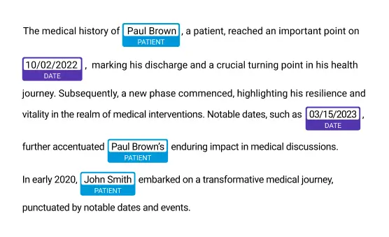 Maintain complete patient context across longitudinal records—preserving temporal relationships, narrative continuity, and data linkability while ensuring privacy through consistent de-identification and intelligent date shifting.