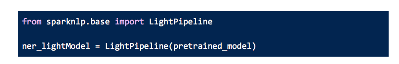 Getting faster inferences and not to deal with Spark data frames, we can convert this pipeline into Spark NLP LightPipeline.