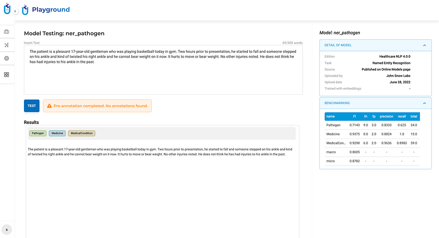 After running a pre-annotation test, you now get an explicit outcome notification. Green means it worked and produced results. Orange means it ran successfully but found no matches — which is very different from failing. Red means something went wrong.