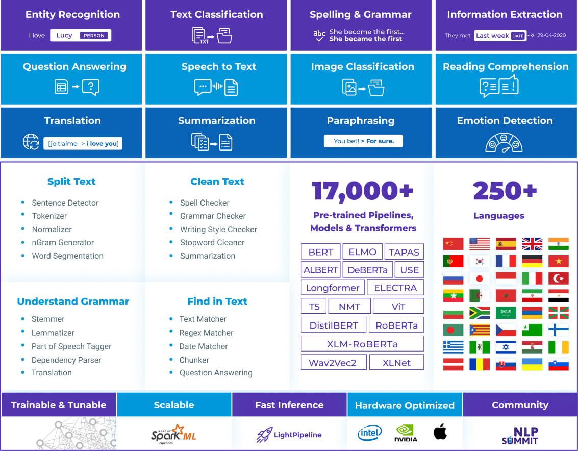We believe that contributing open source software should be a daily habit, not a side project. We publish a new release of the NLP Library for Apache Spark every 2-3 weeks, run the Slack channel for community support, and invest in educating the community.